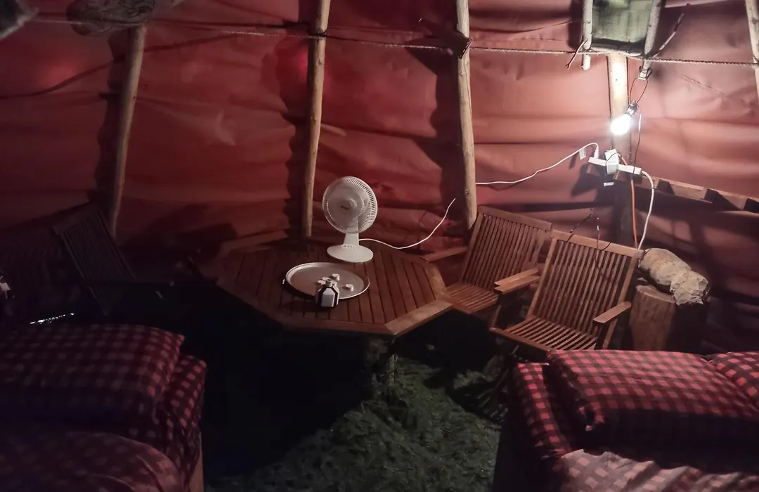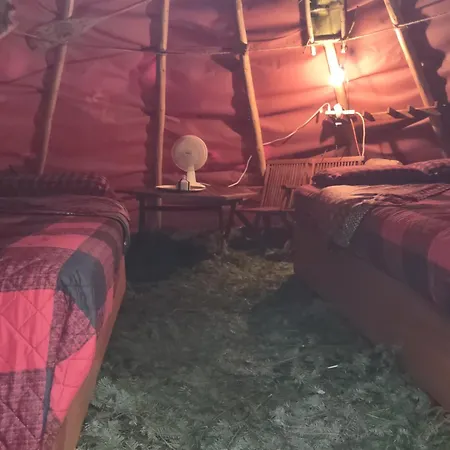 De luxe tent kijkt uit over de tuin. De accommodatie beschikt over een badkamer met een apart toilet en een douche. Badlakens zorgen ook voor een comfortabele ervaring.